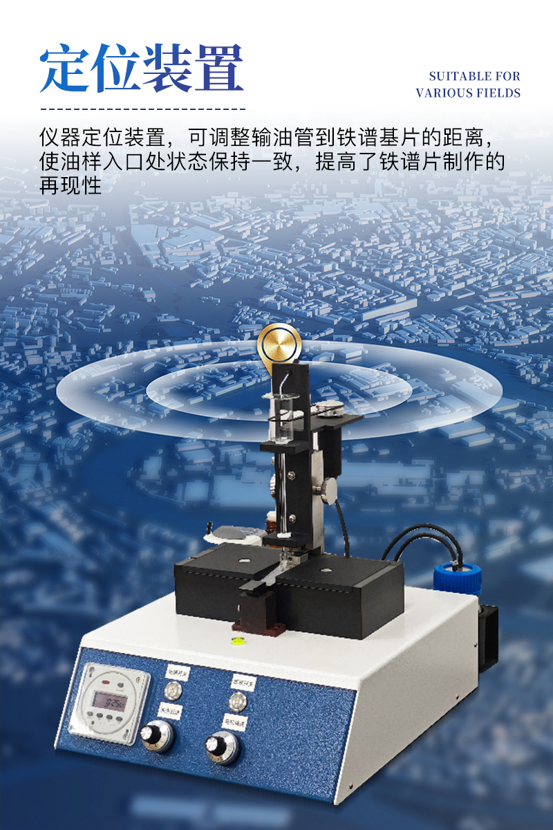 (11)仪器定位装置,可调整输油管到铁谱基片的距离,使油样入口处状态保持一致,提高了铁谱片制作的再现性;