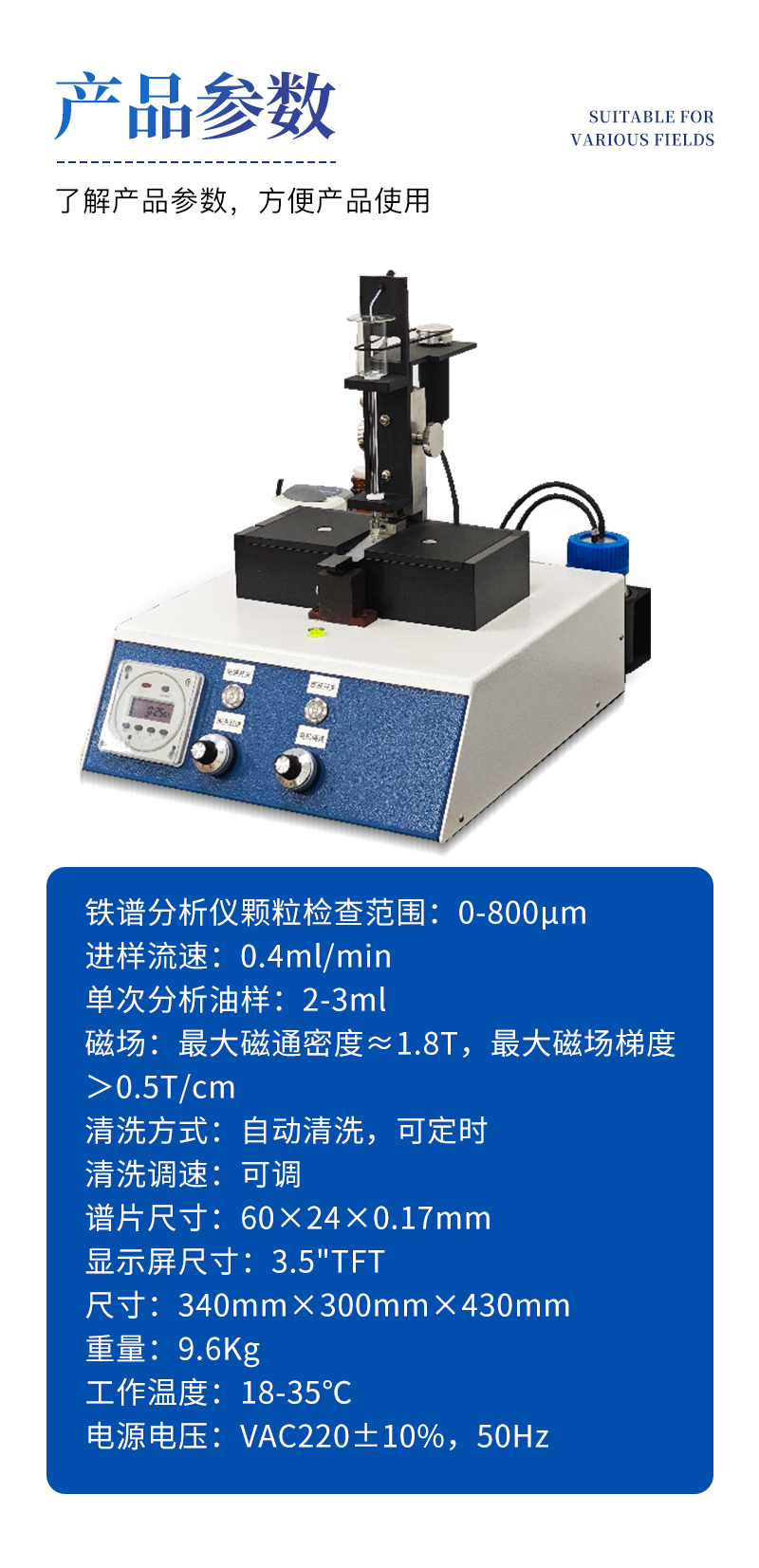 (1)铁谱分析仪颗粒检查范围:0-800μm;