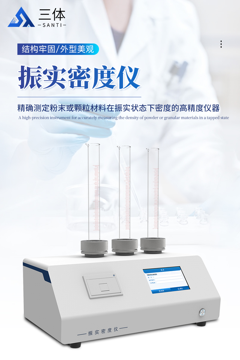 振实密度仪(Tap Density Tester)是一种通过模拟实际工况中的振动条件,**测定粉末或颗粒材料在振实状态下密度的高精度仪器。其核心功能是评估材料在压实过程中的体积变化,为工业生产、研发和质量控制提供关键数据支持。