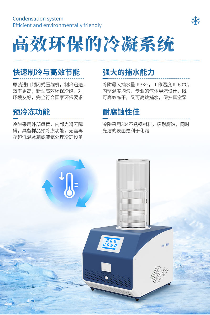 (3) 冷阱采用外部盘管,内部光滑无障碍,具备样品预冷冻功能,无需再配备超低温冰箱或液氮处理冷冻设备。