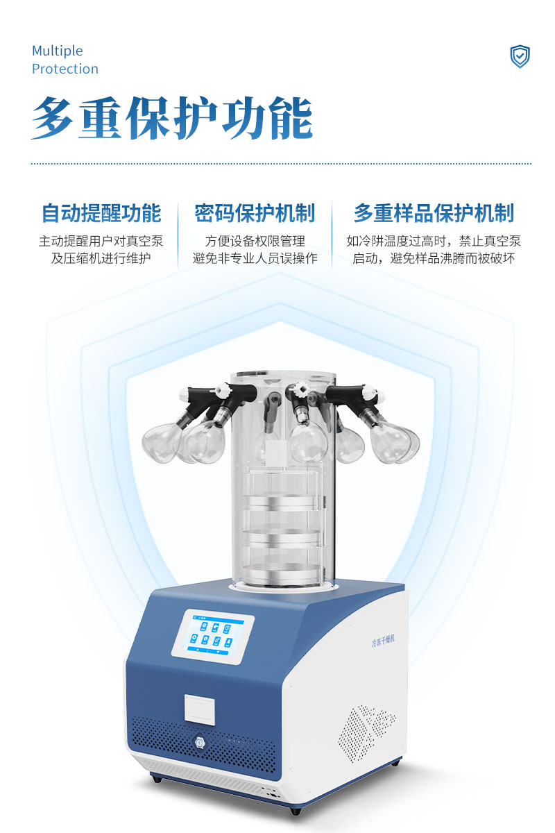 (6) 多重样品保护机制,如冷阱温度过高时,禁止真空泵启动,避免样品沸腾而被破坏。