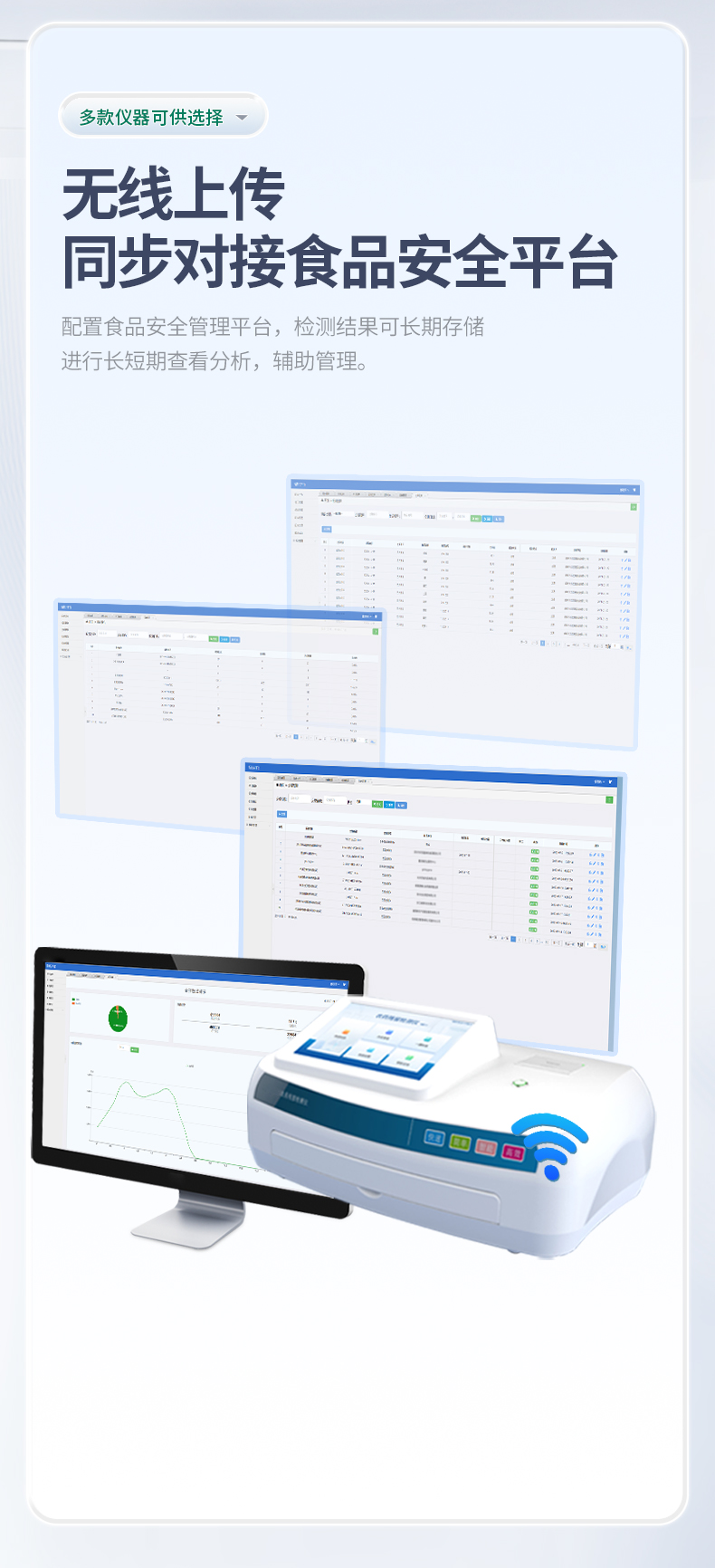 6、配置食品安全管理平台,检测结果可长期存储,进行长短期查看分析,辅助管理。
